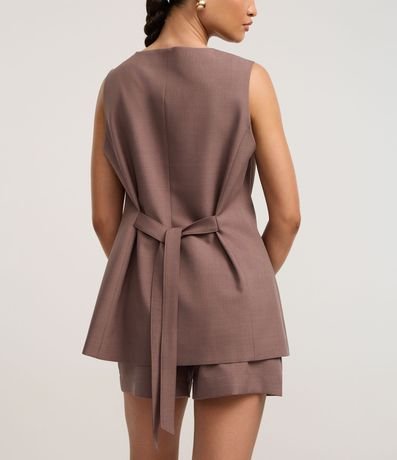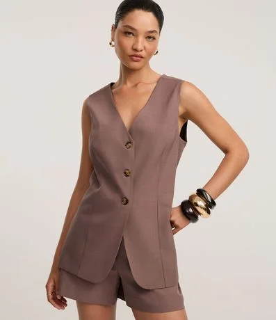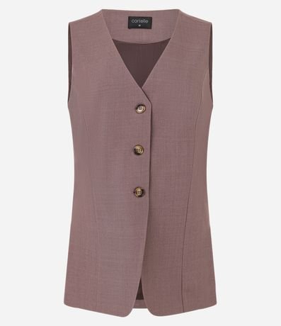 Colete alongado alfaiatado, confeccionado em tecido plano, com decote V, botões e pences. Este produto possui material mais sustentável em sua composição, sendo ambientalmente mais responsável.