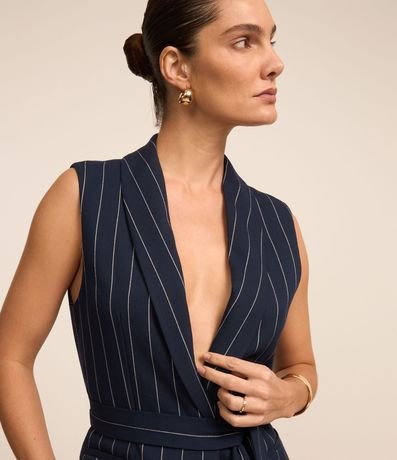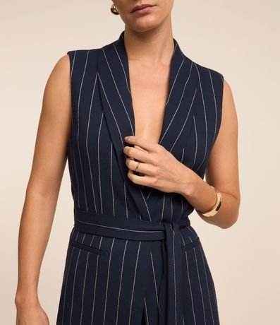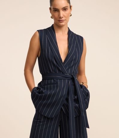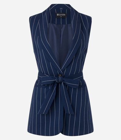 Ref: Colete alfaiatado com lapelas na gola, botão único com amarração laço além listras verticais riscas estilo riscas de giz. Confeccionado em poliamida.