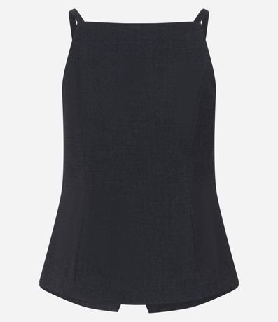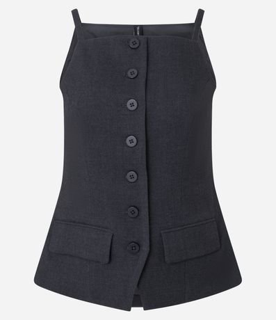 Colete feminino confeccionado em alfaiataria, com alcinhas finas e fechamento frontal por botões. Possui modelagem alongada e bolsos decorativos, trazendo sofisticação e modernidade ao visual. Confeccionado com boas práticas ambientais e viscose certificada para um estilo consciente.