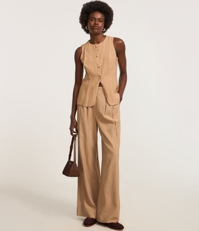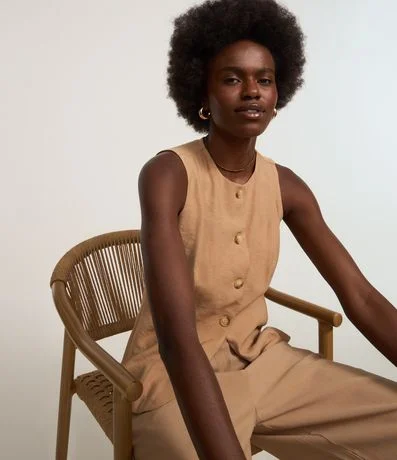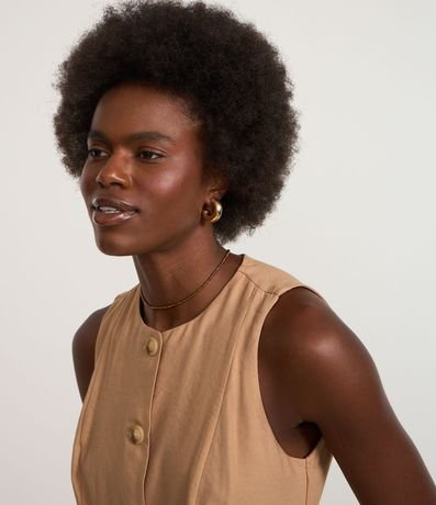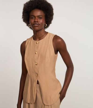 Ref: Colete alongado confeccionado em crepe, abotoamento frontal com recortes e fendinha frontal.