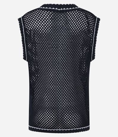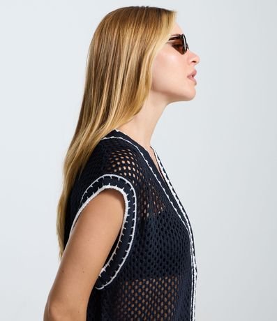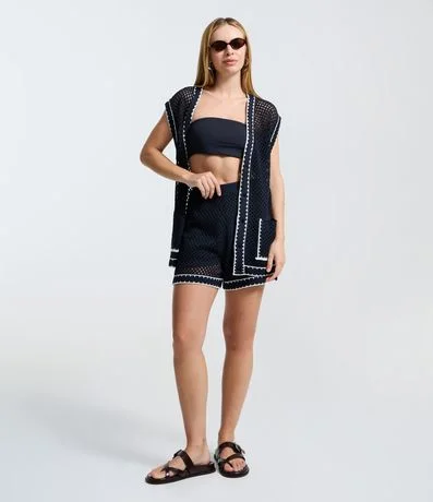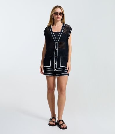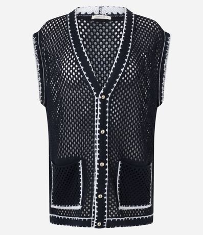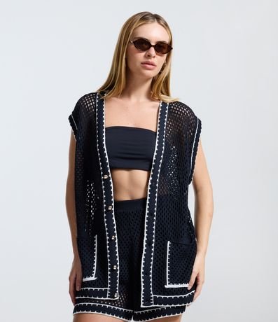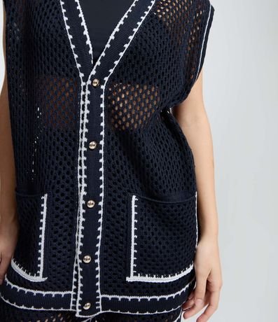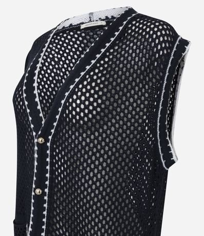 Ref: Colete feminino confeccionado em tricô, no modelo alongado. Possui decote v, abotoamento frontal, bolsos e viés contrastante.