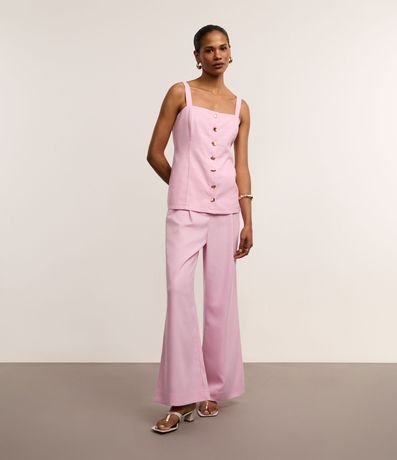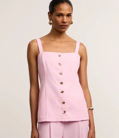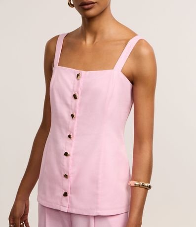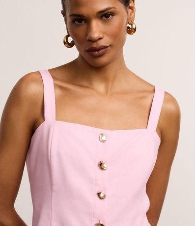 Ref: Colete de alças largas, confeccionado em tecido plano com 12% de linho, com decote quadrado, pences e abotoamento frontal. Os botões da peça são metalizados com efeito martelado. Este produto possui viscose certificada em sua composição, sendo ambientalmente mais responsável.