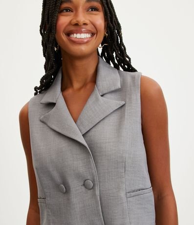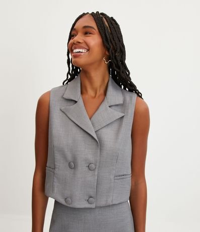 Colete Curtinho em Tecido Crepe com Botões Forrados