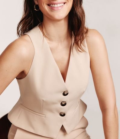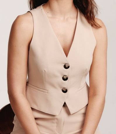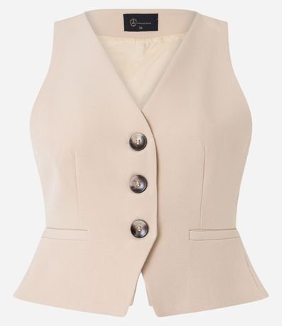 Ref: Colete curto, em alfaiataria, 03 botões frontais e bolso fake.