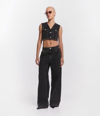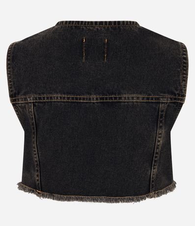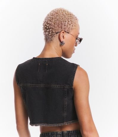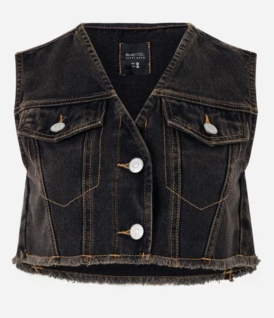 Colete Curto em Jeans com Bolsos