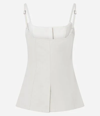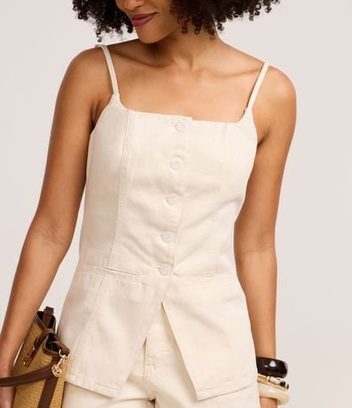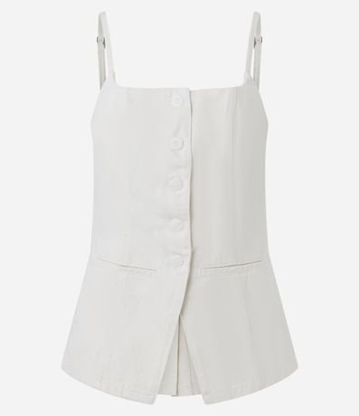 Ref: Colete com silhueta ajustada, confeccionado em sarja, com alças finas reguláveis, abotoamento frontal, bolsos falsos frontais e barra V. Este produto possui material mais sustentável em sua composição, sendo ambientalmente mais responsável.