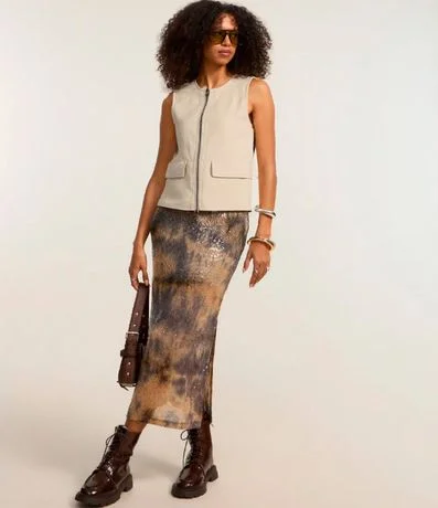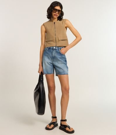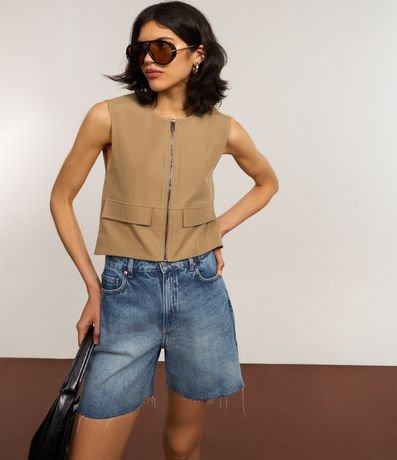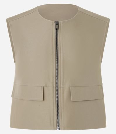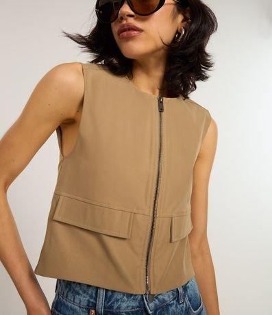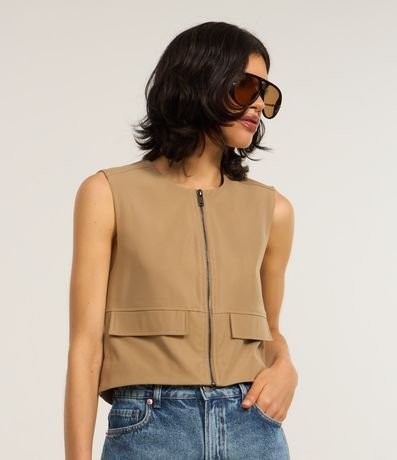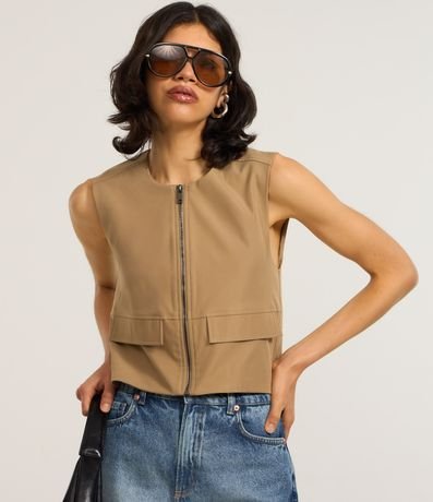 Ref: Colete feminino com corte alfaiatado. Possui gola redonda, fechamento por zíper e bolsos com lapela.
