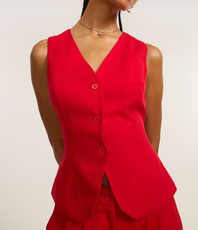 Colete feminino confeccionado em viscose mais sustentável, de corte alfaiatado, com fechamento por botões e abertura nas costas.