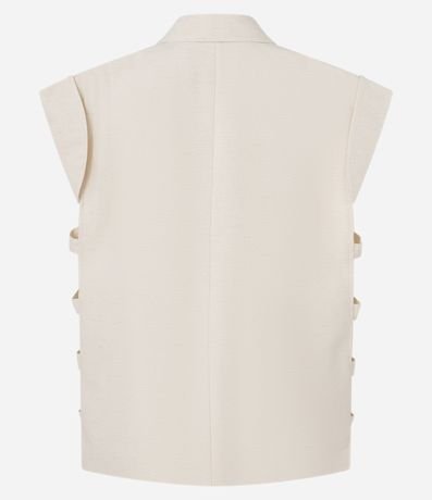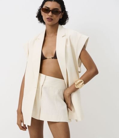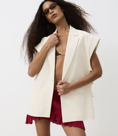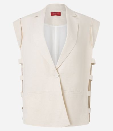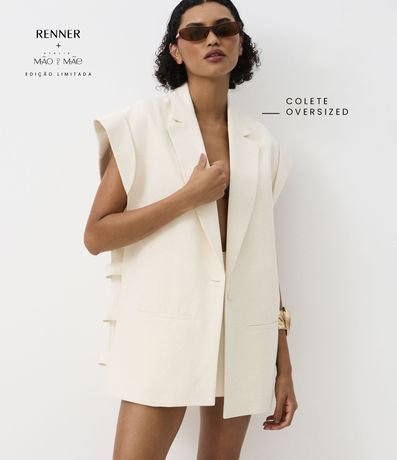 Ref: Colete confeccionado em algodão com 03% de linho, com lapelas na gola, botão forrado para fechamento, bolsos falsos e aberturas laterais com tiras. Este produto possui material mais sustentável em sua composição, sendo ambientalmente mais responsável. Peça com forro. O item faz parte da collab Ateliê Mão de Mãe.