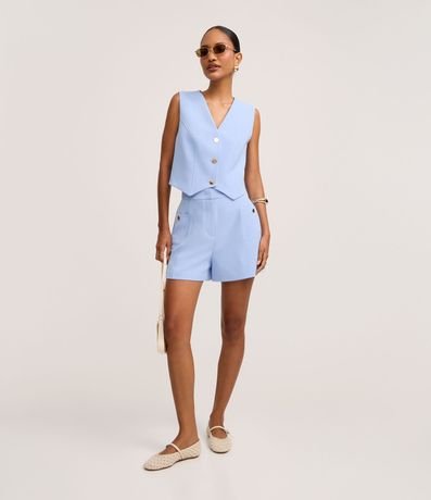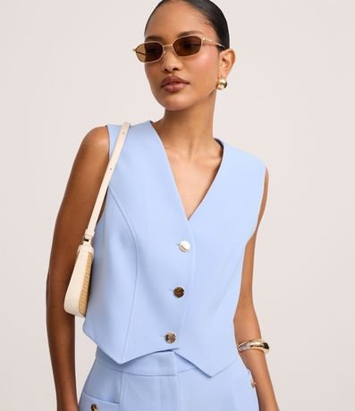 Ref: Colete slim, confeccionado em crepe, com decote V e botões frontais.