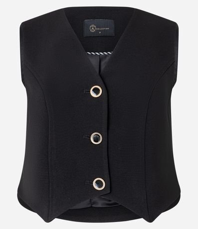 Ref: Colete confeccionado em crepe com decote V e botões diferenciados com bordas metalizadas.