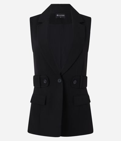 Colete em Crepe com Gola Blazer e Cinto Embutido