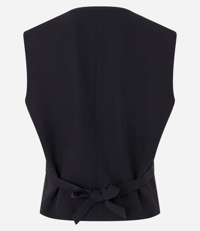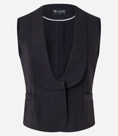 Colete feminino, confeccionado em crepe. Peça com decote lapela diferenciado, sem mangas, detalhes e amarração nas costas.