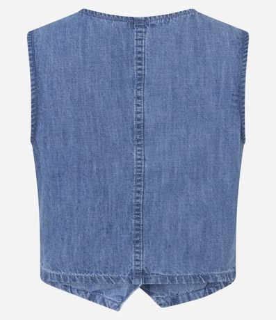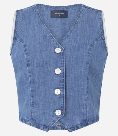 Colete em Jeans com Decote V e Botões Frontais