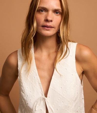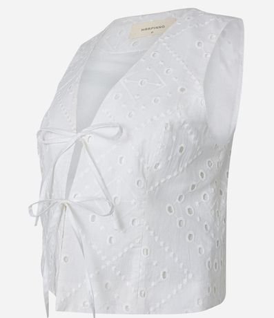 Ref: Colete confeccionado em laise com abertura frontal com amarrações.