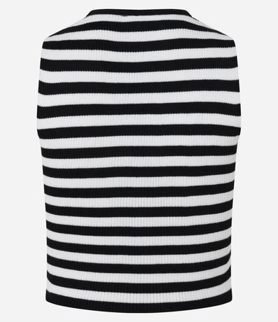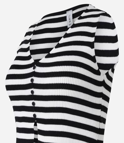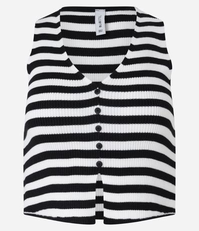 Ref: Colete feminino confeccionado em tricô, com fechamento por botões e estampa de listras.