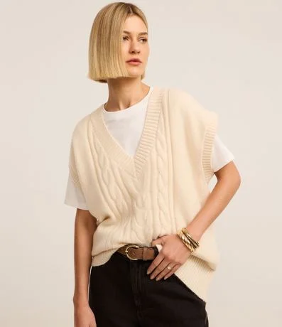 Colete em Tricô com Textura Diferenciada e Decote V