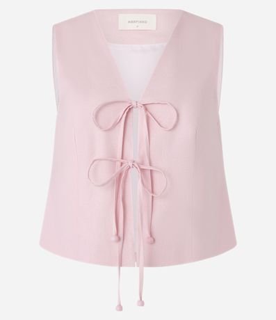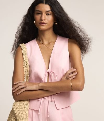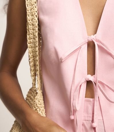 Ref: Colete feminino confeccionado em viscolinho, decote em v, com amarração em laços frontal, sem manga.