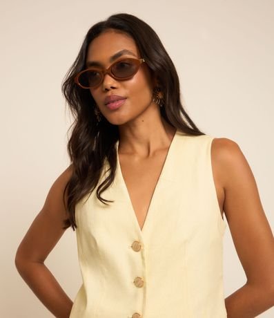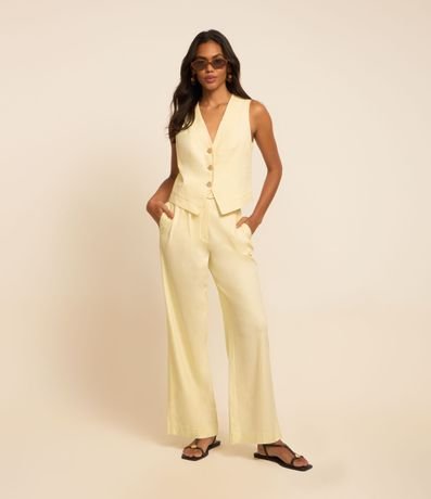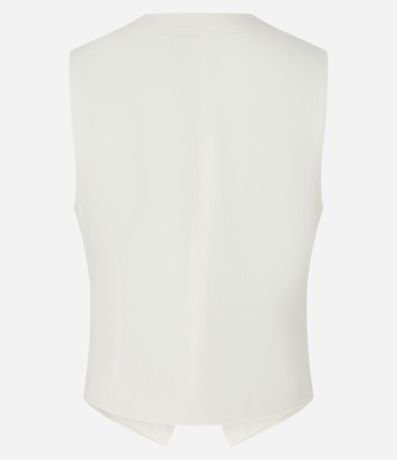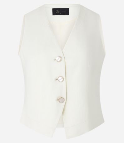 Colete feminino, confeccionado em viscolinho, com abotoamento frontal.