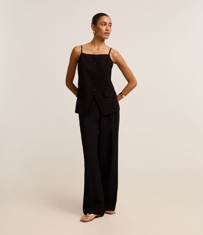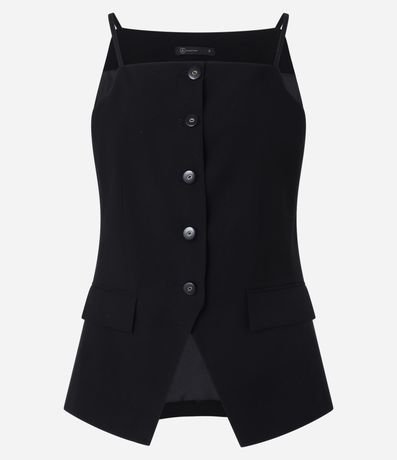 Ref: Colete longo, confeccionado em viscose, com decote quadrado e alcinhas finas. Conta com botões frontais diferenciados, lapelas aplicadas que simulam bolsos e recorte V na barra. Este produto possui viscose certificada em sua composição, além de ter sido produzido através de processos mais sustentáveis com boas práticas ambientais, sendo ambientalmente mais responsável.