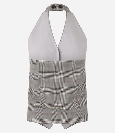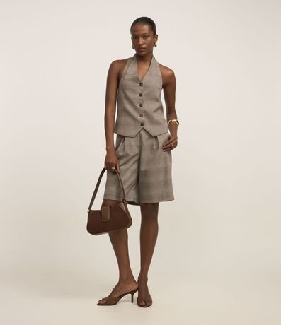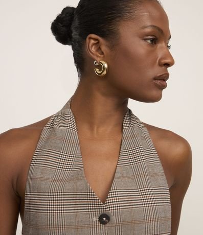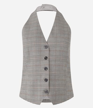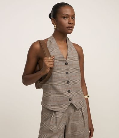 Ref: Colete frente única em alfaiataria com estampa xadrez e botões frontais.