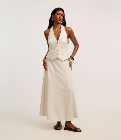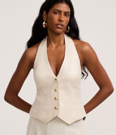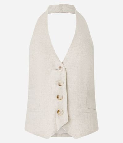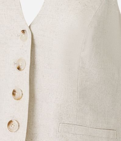 Ref: Colete frente única, confeccionada em viscolinho, com botão no pescoço, abotoamento frontal, bolsos frontais falsos e barra V. Este produto possui viscose certificada em sua composição, sendo ambientalmente mais responsável.