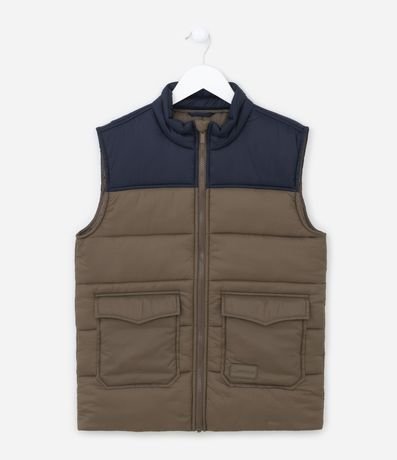 Ref: Colete infantil fofinho com recorte, fechamento por zíper e bolsinhos com lapela.