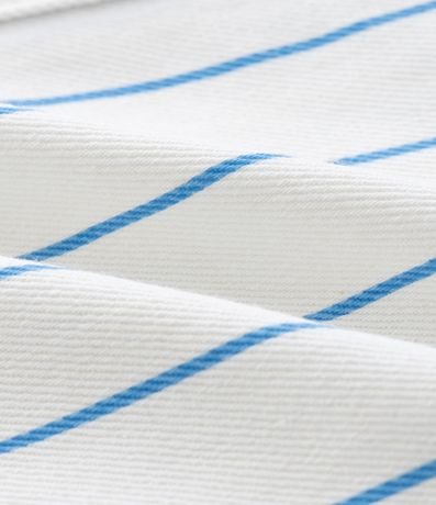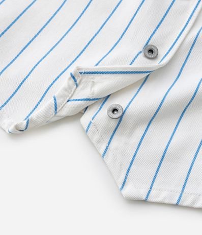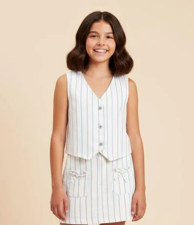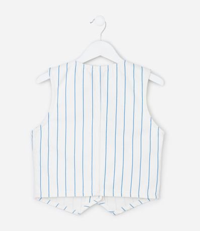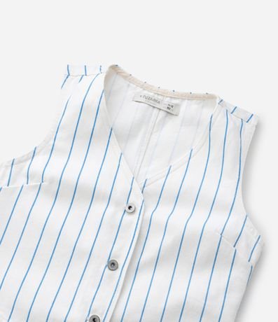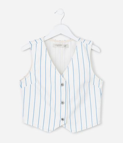 Ref: Colete infantil confeccionado em sarja mais sustentável. Possui decote v, abotoamento frontal e estampa de listras.