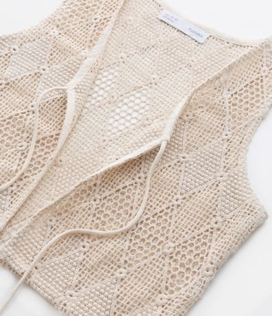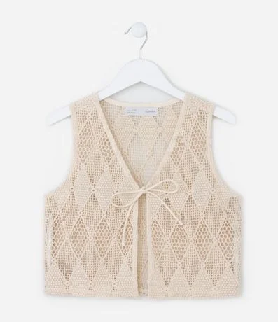 Ref: Coletinho infantil confeccionado em tricô, com gola V, amarração na frontal e textura.