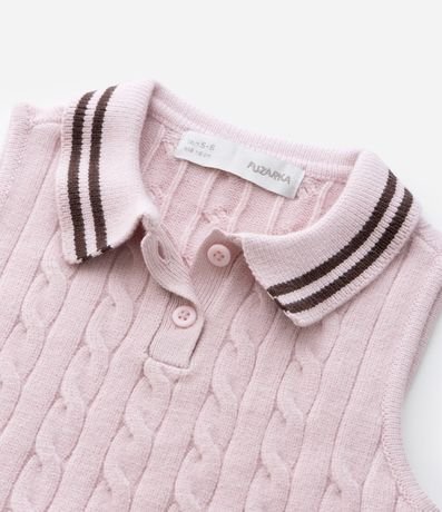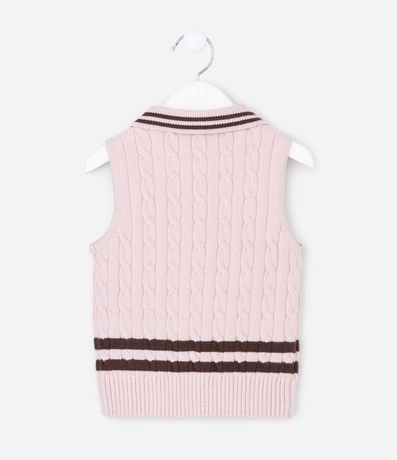 Colete Infantil em Tricô com Gola Polo e Trama Trançada – Tam 5 a 14 Anos