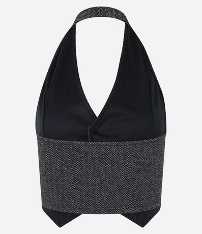 Ref: Colete frente única com decote V, confeccionada em jacquard e com botões frontais.