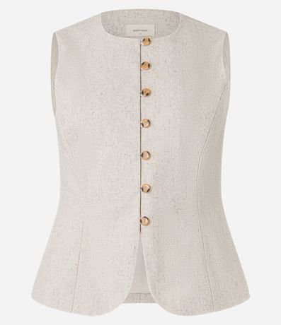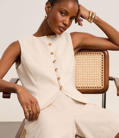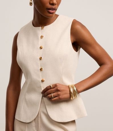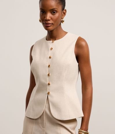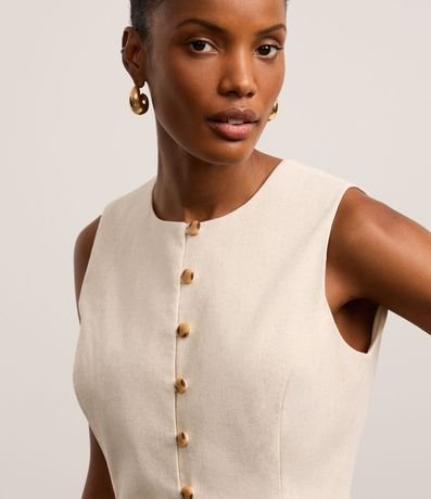 Ref: Colete alongado de estrutura alfaiatada, confeccionado em viscolinho, com gola redonda, botões frontais e pences. Este produto possui viscose certificada em sua composição, além de ter sido produzido através de processos mais sustentáveis com boas práticas ambientais, sendo ambientalmente mais responsável.