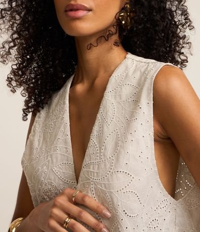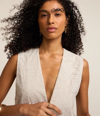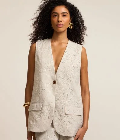 Ref: Colete alongado confeccionado em laise com botão único, lapelas frontais e folhagens bordadas com fechamento por botão único.