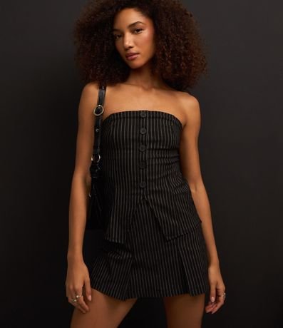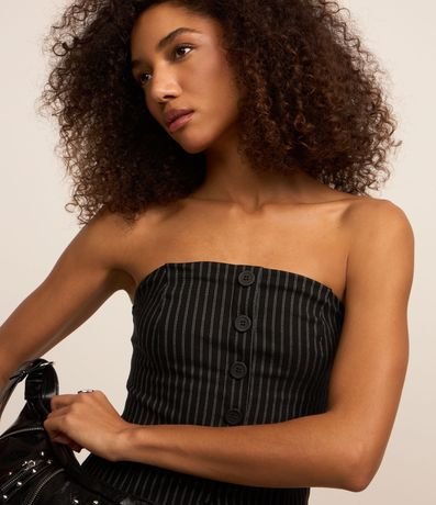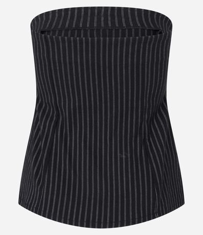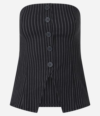 Ref: Colete alongado sem alças com botões frontais para fechamento além de listras duplas verticais pontilhadas e abertura V na barra. Confeccionado bengaline de viscose mais sustentável.