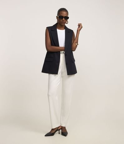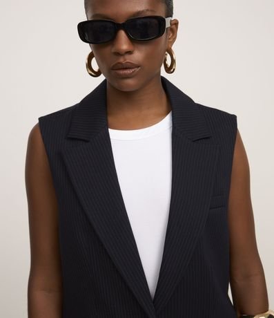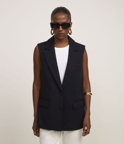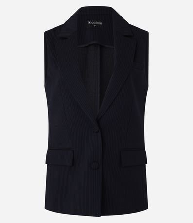 Ref: Colete ponto roma risca de giz em viscose mais sustentável e fechamento por dois botões. Possui bolsos frontais.