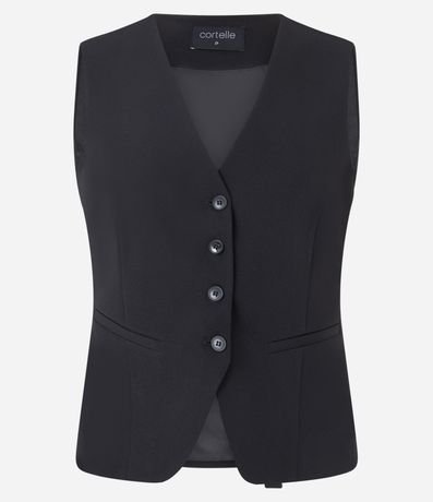 Ref: Colete feminino confeccionado em tecido plano com modelagem slim alfaiatada, garantindo elegância e caimento perfeito. Possui decote V, abotoamento frontal e forro interno, ideal para compor looks sofisticados ou casuais com estilo e praticidade.