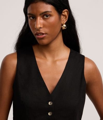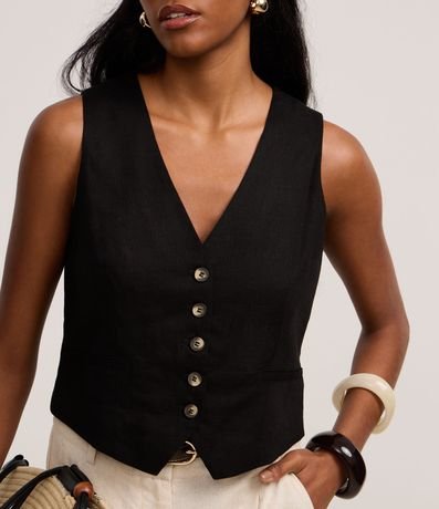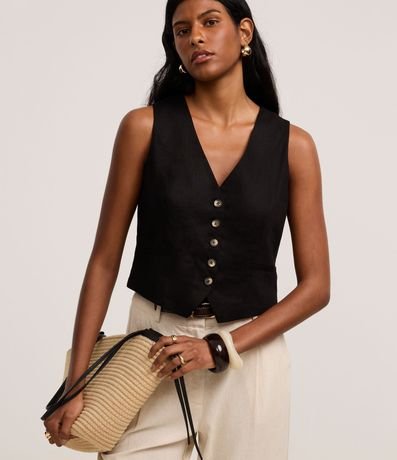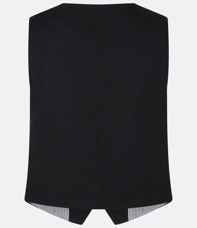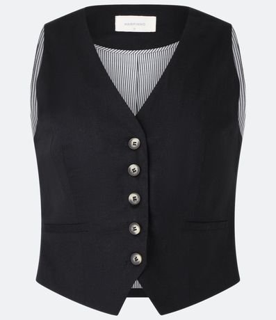 Colete feminino de modelo slim, com decote V e 05 botões para fechamento. A peça possui o forro listrado e detalhe de botões matizados.