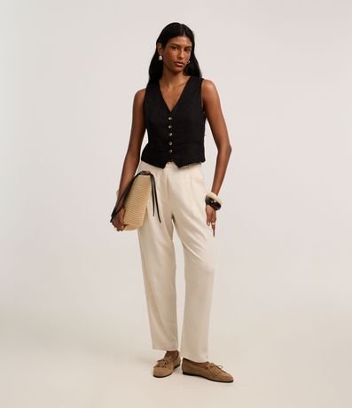 O viscolinho é uma mistura de linho e viscose. O material proporciona toque macio, caimento fluido e um visual sofisticado à peça. Além disso, traz conforto e leveza ao look, perfeito para os dias atuais.