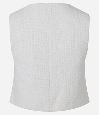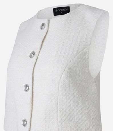 Ref: Colete confeccionado em tweed com gola redonda e abotoamento frontal. A roupa tem pences frontais e tecido todo texturizado.