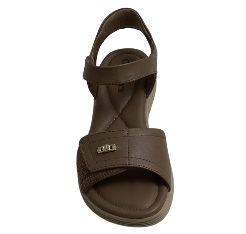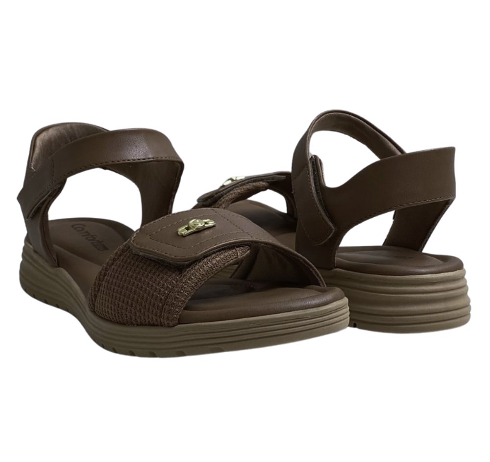 Ref: Sandália Comfortflex. Destaque para suas duas tiras autocolantes para um ajuste perfeito e calce facilitado. Sua palmilha possui espuma reforçada em pontos estratégicos, amenizando o impacto da pisada e ampliando a sensação de conforto. A tira frontal é feita em tecido com elástico, sendo ideal para acomodar os joanetes sem incômodos.