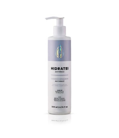 Modo de uso: Com os fios úmidos e limpos, espalhe o Condicionador Antifrizz Hidratei, começando pelas pontas, deslizando pelo comprimento, desembaraçando os fios. Deixe agir por alguns minutos e enxágue. Para maiores resultados, use a linha completa Antifrizz Hidratei.