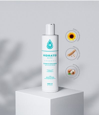 Modo de uso: Com os cabelos limpos e úmidos, aplique o condicionador nas mãos e espalhe no comprimento dos fios. Massageie por alguns minutos e enxágue. Dica: Para um tratamento completo/maior eficácia, use toda linha SHRP Hidratei.