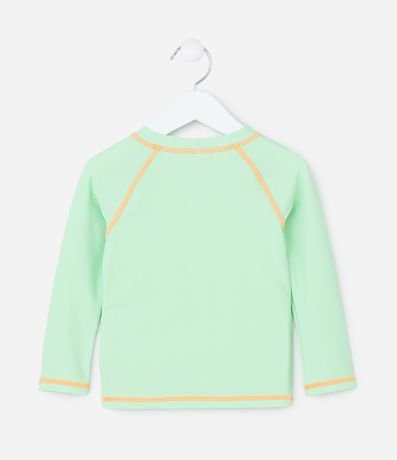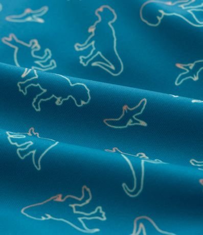 Ref: Conjuntinho de praia/piscina com duas peças com proteção UV: camiseta manga longa e sunga com estampa de dinossauro.