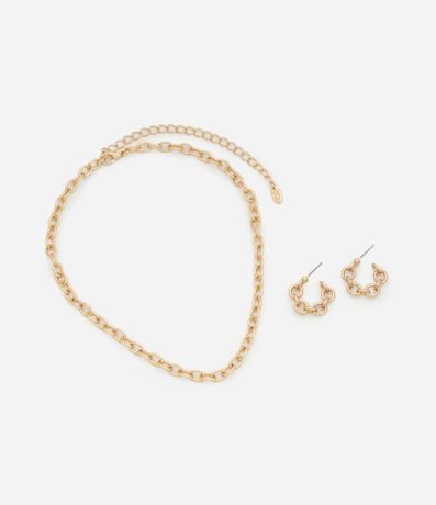 Ref: Conjunto de colar com elos de corrente e brincos argola de elos. Produto confeccionado em metal reciclado.