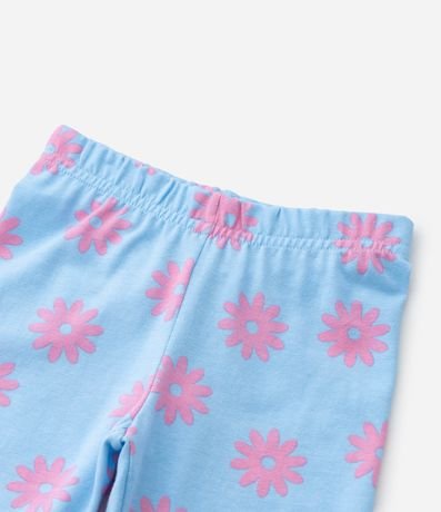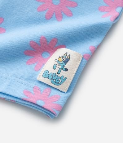Ref: Conjuntinho infantil confeccionado em algodão mias sustentável, com blusa de gola redonda, mangas curtas, estampa Bluey e bermuda ciclista, com cós elástico, estampa de florzinhas.