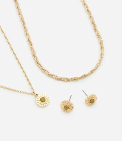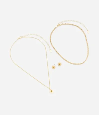Conjunto de Colar Camadas com Pingente e Brincos Botão