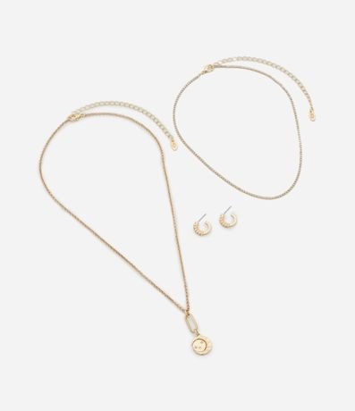Conjunto de Colar Camadas com Pingente Místico e Brincos