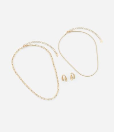 Ref: Conjunto de Colar e Brinco Metal Liso colar camadas 1 rabo de rato redondo e 1 elos finos e brinco pequeno u invertido A