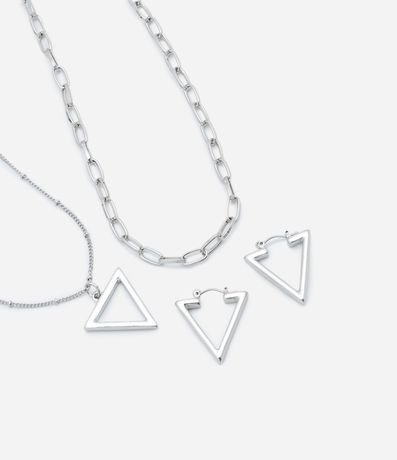 Conjunto colar camadas e brinco triangular. Acessórios cheios de estilo, ideal para compor seus visuais casuais.