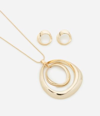 Ref: Conjunto de acessórios feminino composto por colar com corrente fina, pingente oval vazado acompanhado de par de brincos ovais vazados.